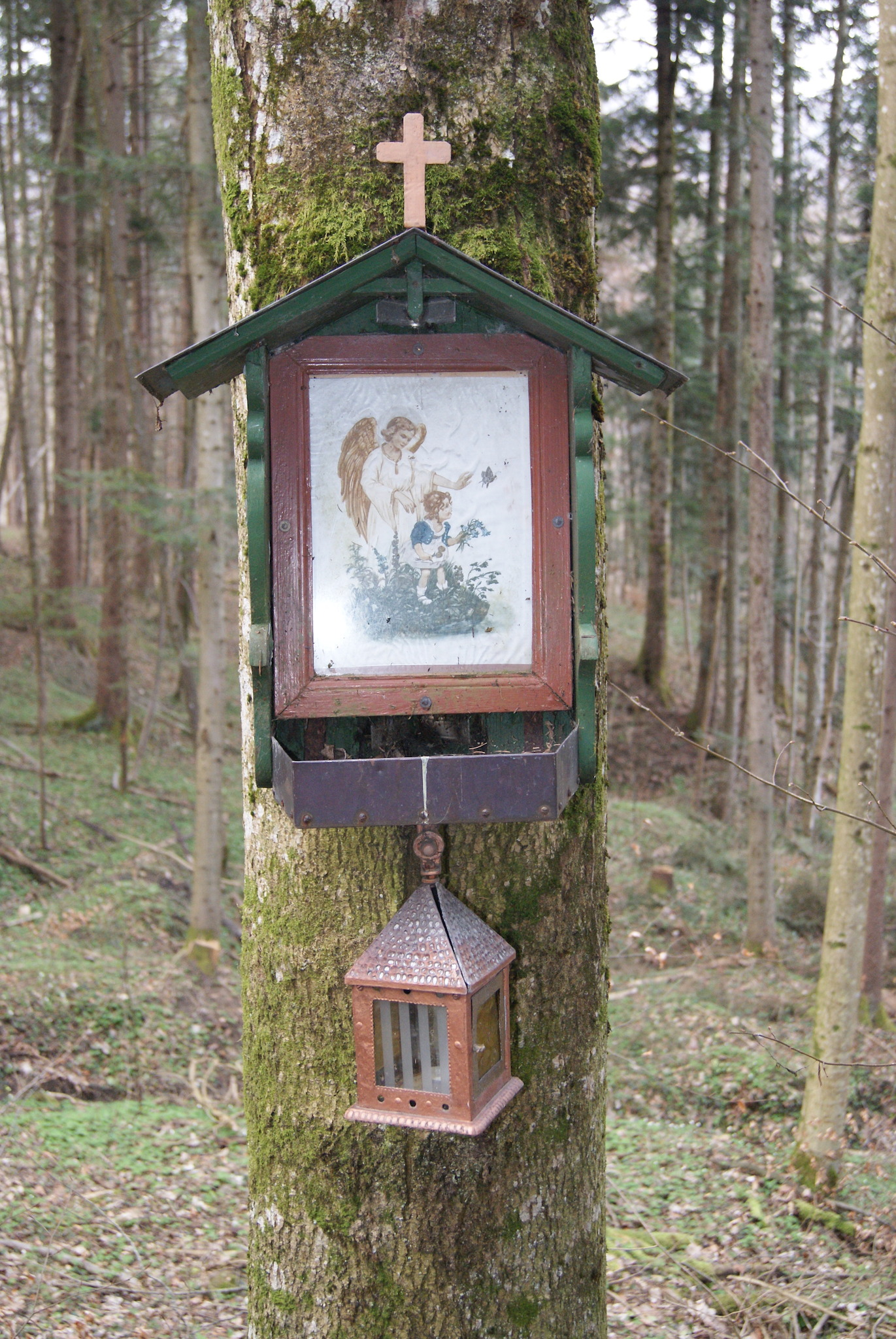 Ursprünglich befand sich an dieser Stelle ein Schutzengel-Marterl, das aber dem Verfall preisgegeben war.