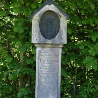Kleiner Tabernakelpfeiler (Stein) mit ovalem Madonnenbild (Metall). Steinpfeiler dieser Art waren in der Zwischenkriegszeit bes. als Grabmäler häufig, wurden aber auch als Bildstöcke verwendet