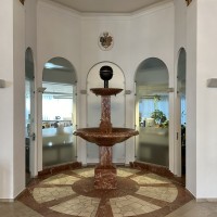 Between 1950 and 1951, the middle part of the Trinkhalle building was redesigned. In that middle part, there had been a wide niche where the Klebelsberg Salt Spring had been available for spa treatments since 1907.