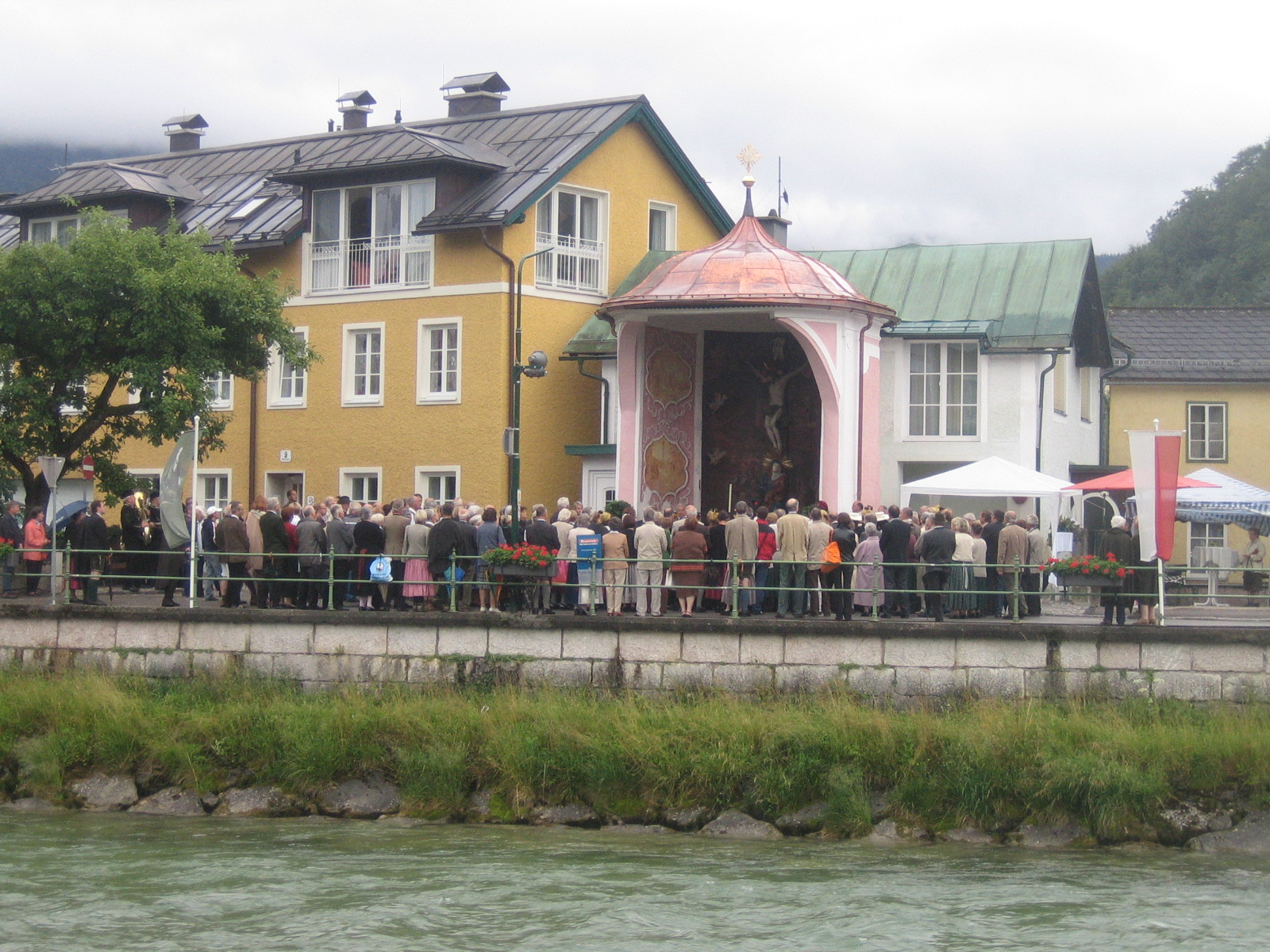 In the present chapel, on the wall to the right are their initials as well as the "corner stone" with the year of construction. Their reason for donating the chapel may have been a shipwreck the year before because a votive painting (copy; the original is in the Museum of the Township of Bad Ischl) depicting a shipwreck with the year 1725 has “always” hung in the chapel.