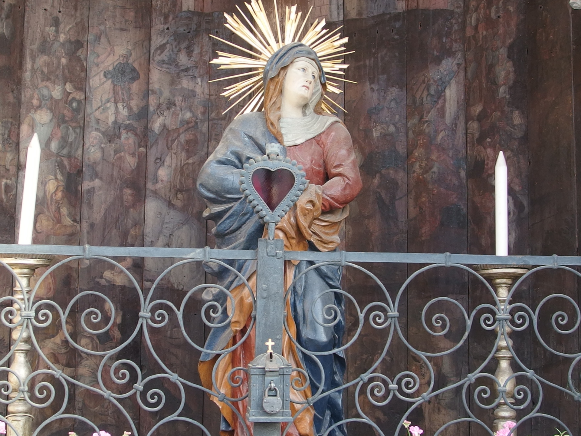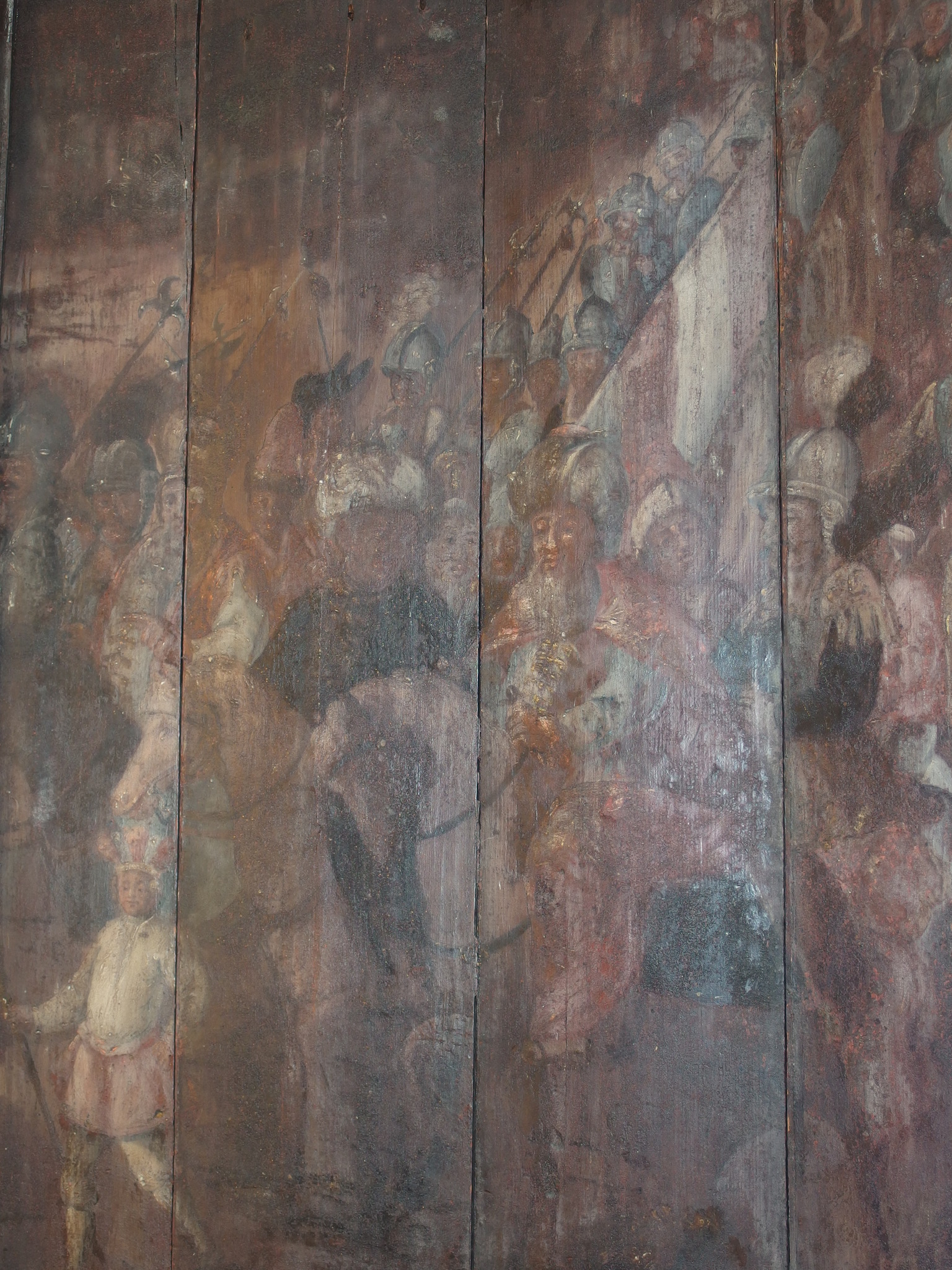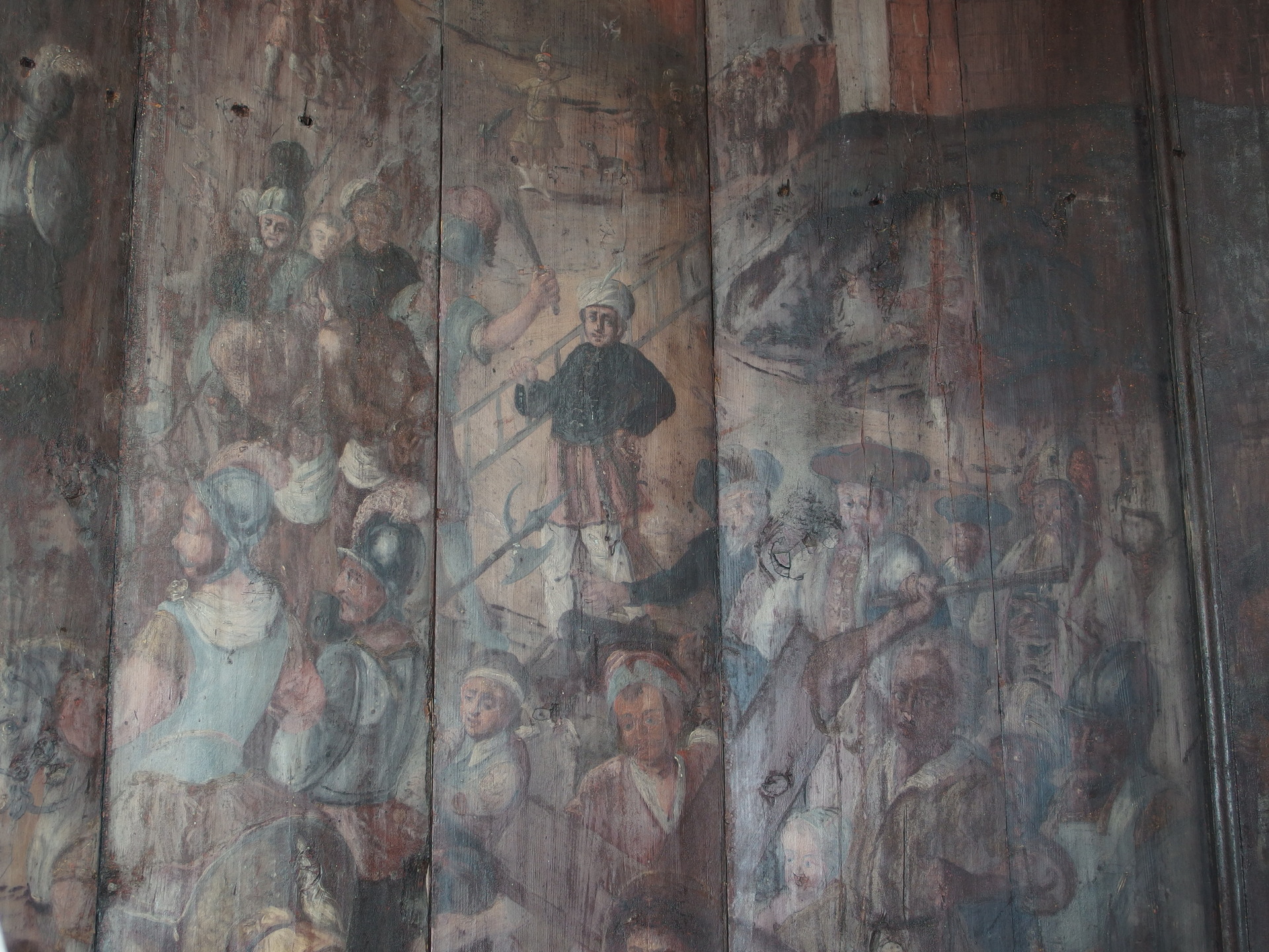 The background of the group is the large painting called "Christ's Walk to Golgotha" (early 18th century), presumably painted on the boards by little-known painter Paul Preißl. Some parts of this outstanding painting are unfortunately difficult to read because of the hard and browned layers of varnish, but it is worth studying the details.