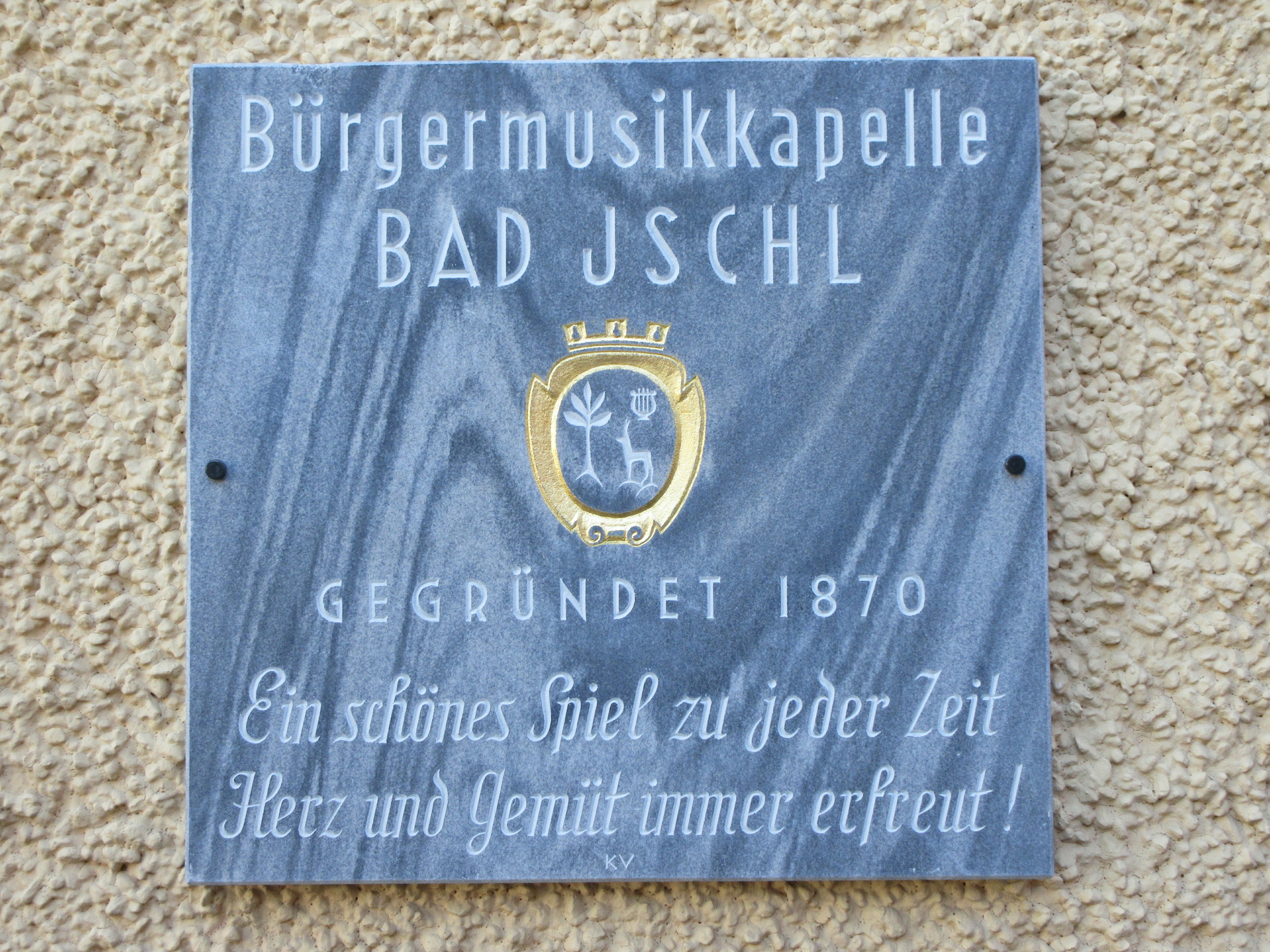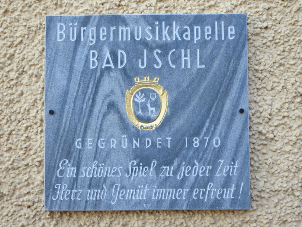 The Town’s Band (Bürgermusikband) was founded in 1870. Its information board was originally located at the rehearsal room at Siriuskoglgasse 3. When that building was demolished in 2003, the band found its new room in the former kindergarten at Schulgasse. It goes to follow that the band’s information board was relocated there.