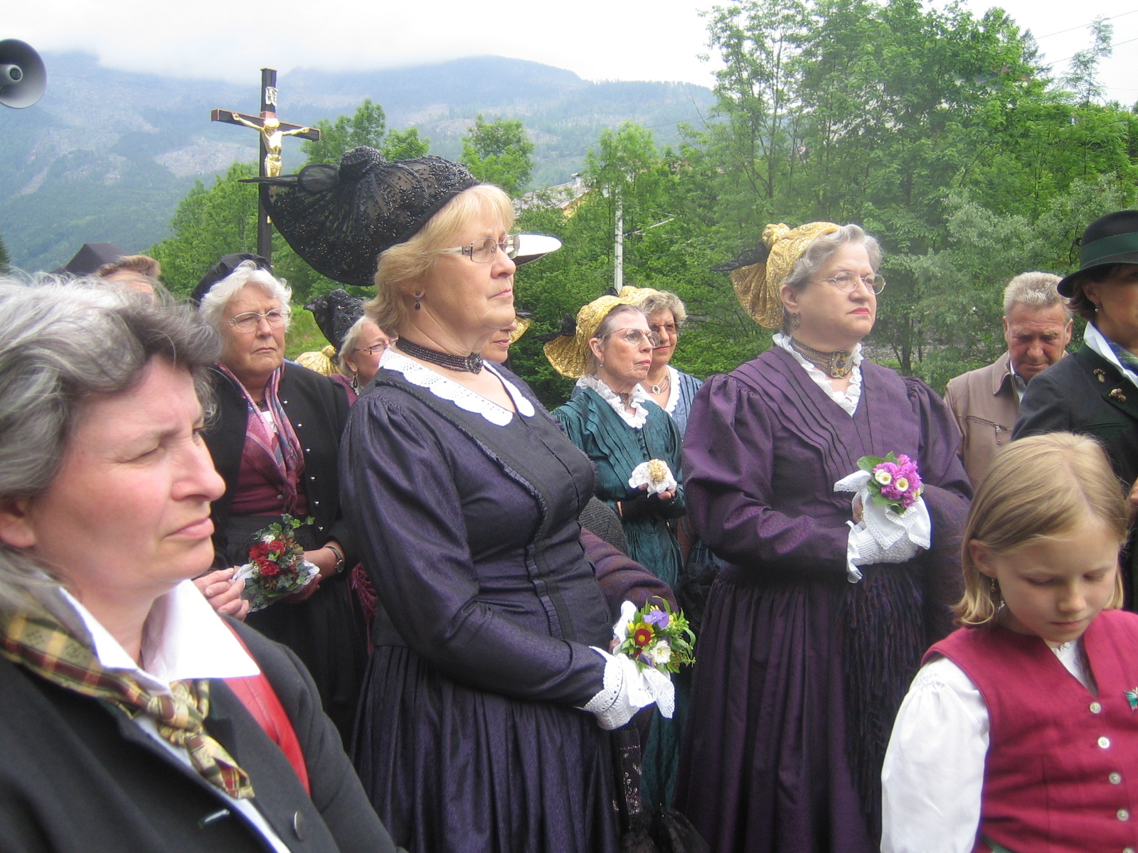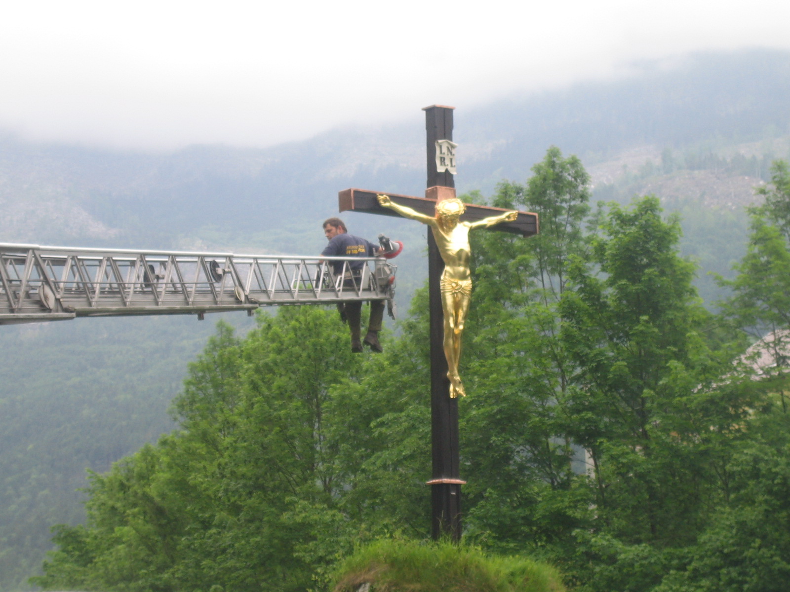 The somewhat larger-than-life-sized corpus, mounted on a free-standing larch wood cross (from 1975), is a copy of the Gothic rood screen cross in Vienna's St. Stephen's Cathedral, which was largely burned in 1945. The corpus was made by the Mohrenberg foundry in Vienna. There are several casts of this sculpture; nine pieces are known of. The "Christ of Ischl” has been gilded since the 19th century, but there is evidence that it was originally natural.