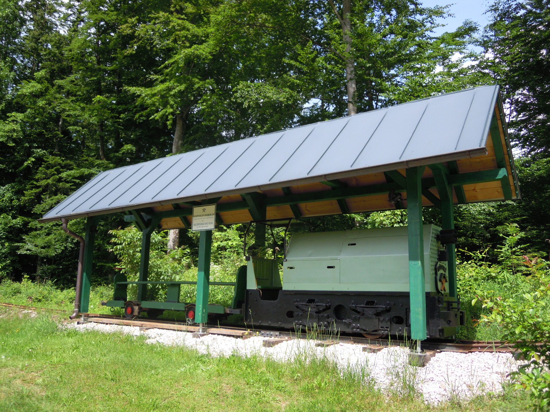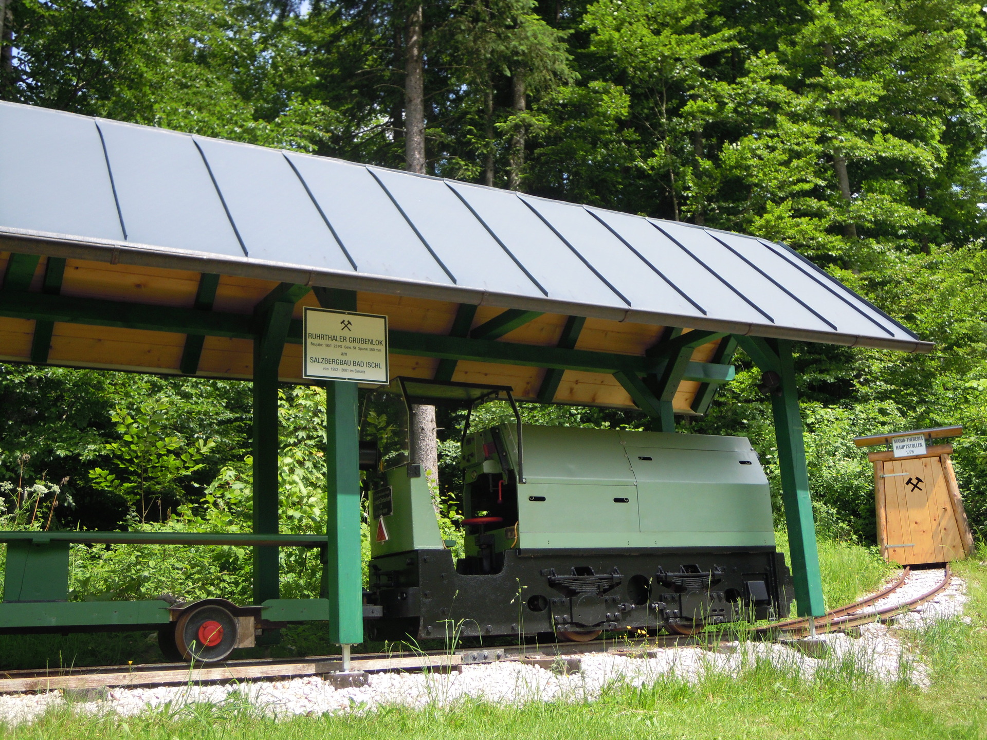 The mine locomotive, which was in service from 1952 until the closure of the show mine in 2001 in the Maria Theresia Main Tunnel (“Maria-Theresia-Hauptstollen") at Radgrabenstrasse 2, was to be scrapped. However, an enthusiast bought the locomotive, restored it, and set it up in his garden in 2009/10 as a sort-of mining museum.