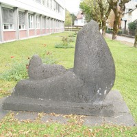 The group of sea lions (mother and child) made of artificial stone is the remnant of a fountain that used to be located in the courtyard of the school.