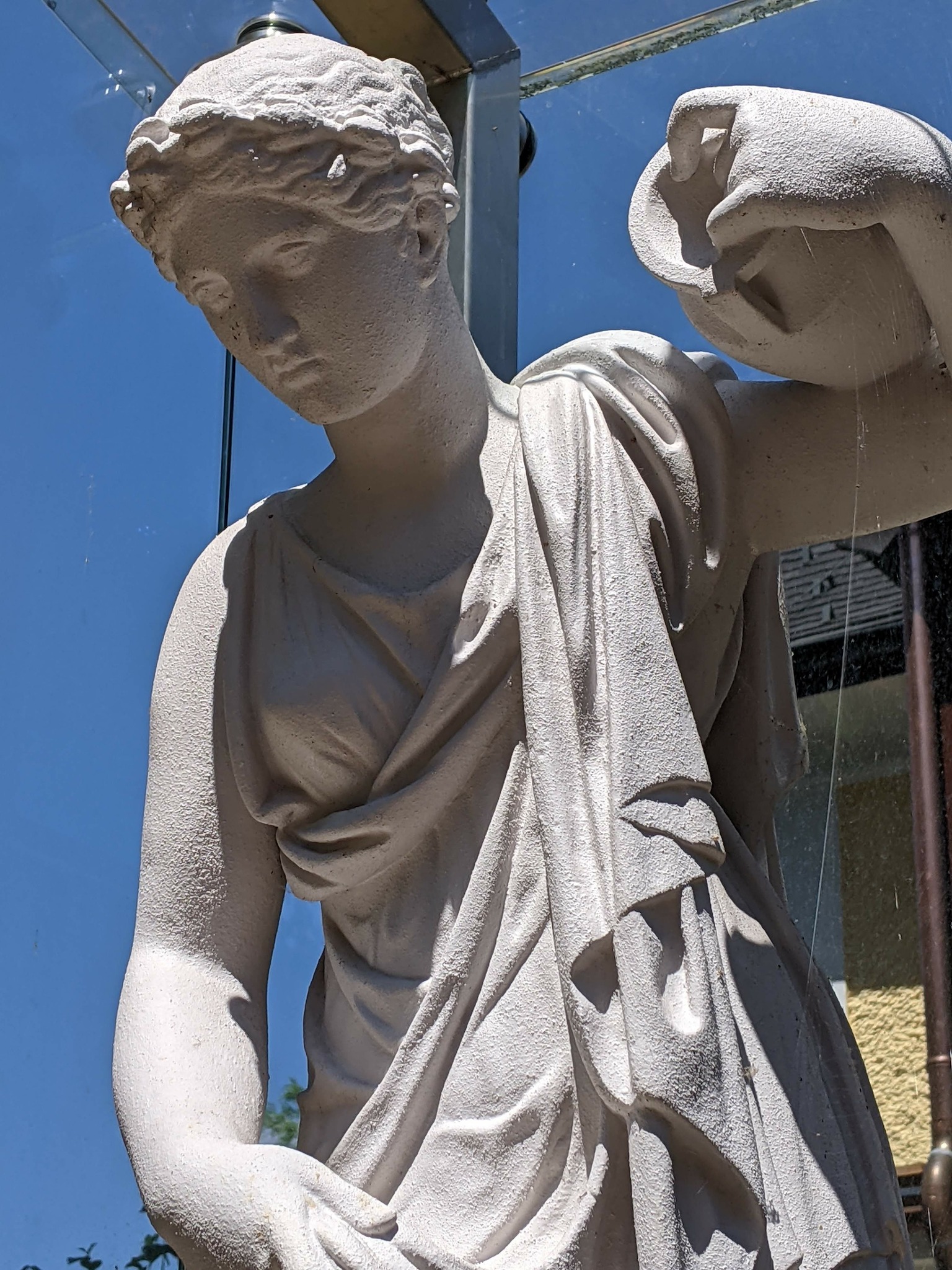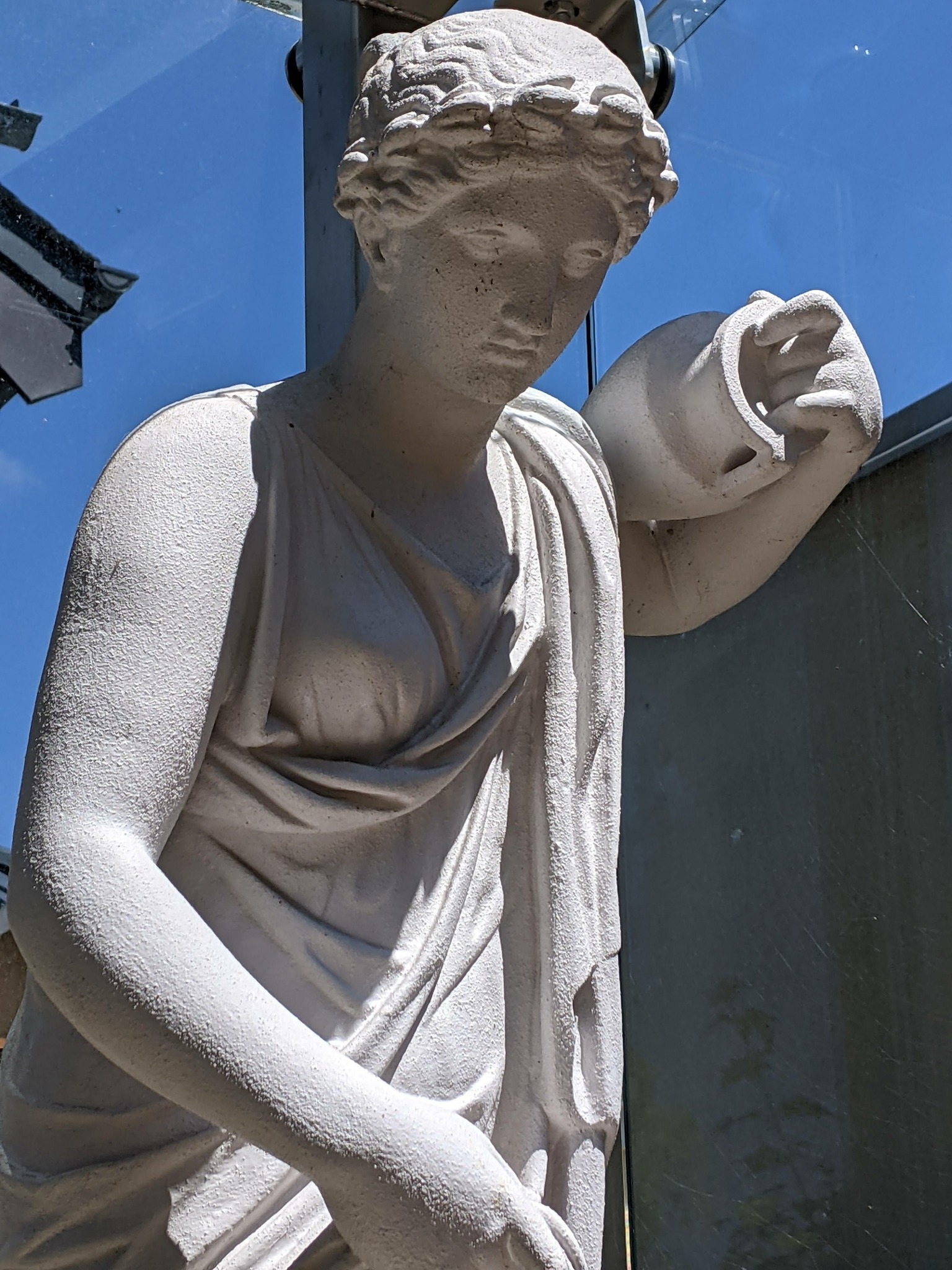 Although there is no Latin inscription on the sculpture, this statue is very similar to works of art from ancient times. If you look closely, you can see many typical features from Greek art, even if this sculpture does not date from that period.