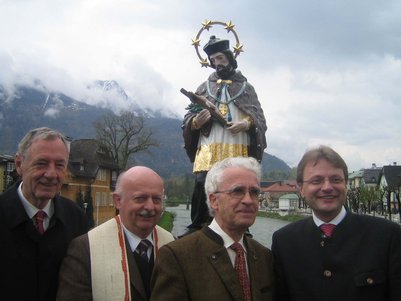 During the flood of 1897, the main bridge of Bad Ischl and a wooden statue of the "bridge saint" St. John of Nepomuk, which had been added to the bridge in 1867, were destroyed. In 1899, Amalie Drouot, a long-time summer guest from Linz, donated a cast-iron statue of the saint for the new iron bridge, which was opened in 1900. The statue of St. John of Nepomuk was last restored in 2008 by the Cultural Heritage Society of Bad Ischl (Ischler Heimatverein).