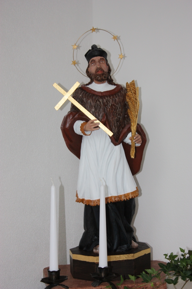 On 16 May 2015, the time had come: the chapel was finished and was consecrated to St. John of Nepomuk by Deacon Alois Wiesauer as part of a May devotion. Hannes Streibl was able to welcome numerous guests at the consecration. He thanked the many volunteers and supporters and especially the young artist Lukas Österreicher, who had carved the statue of St. Nepomuk.