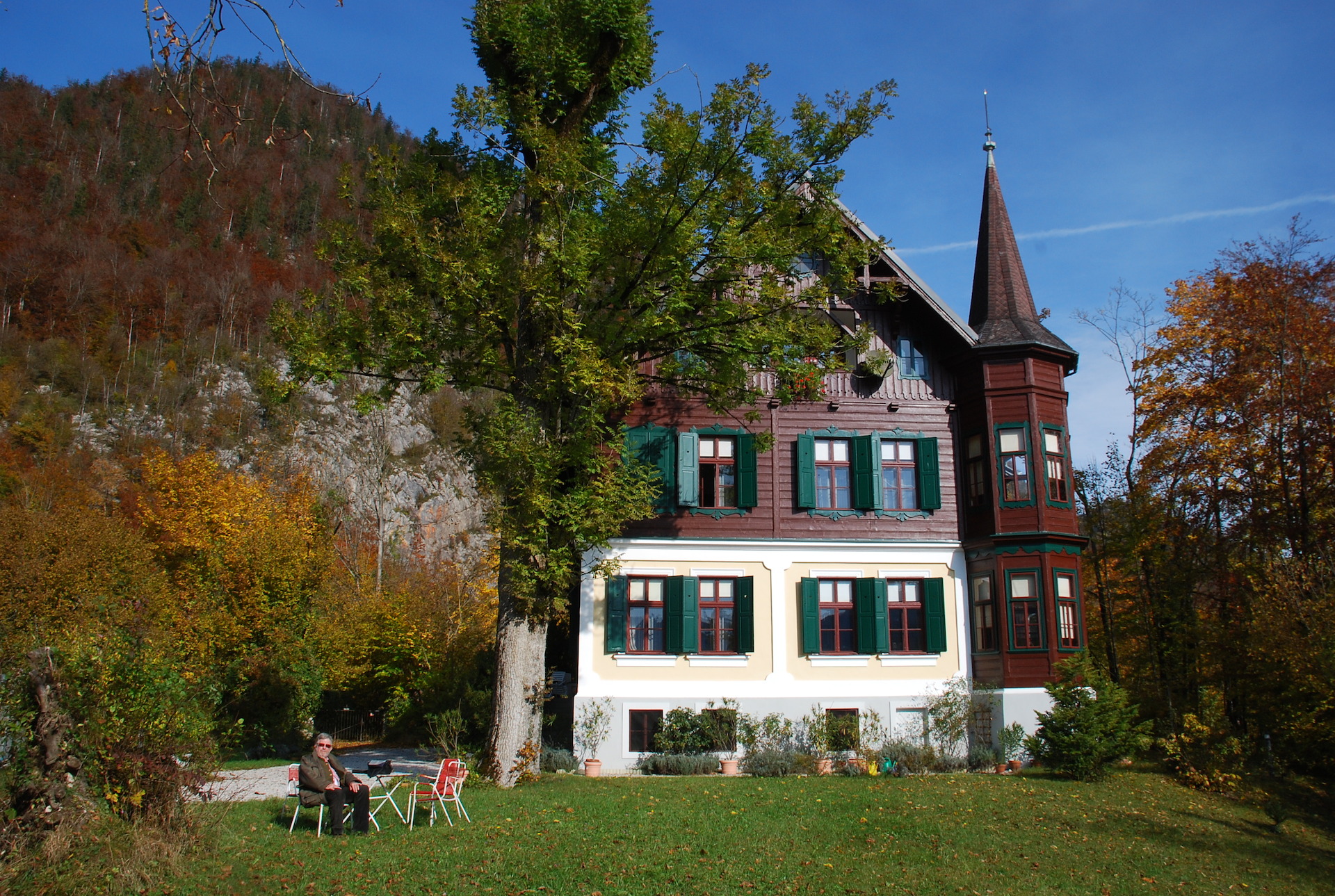 A beautiful old wooden villa above the mouth of the Ischl and the Traun rivers.
