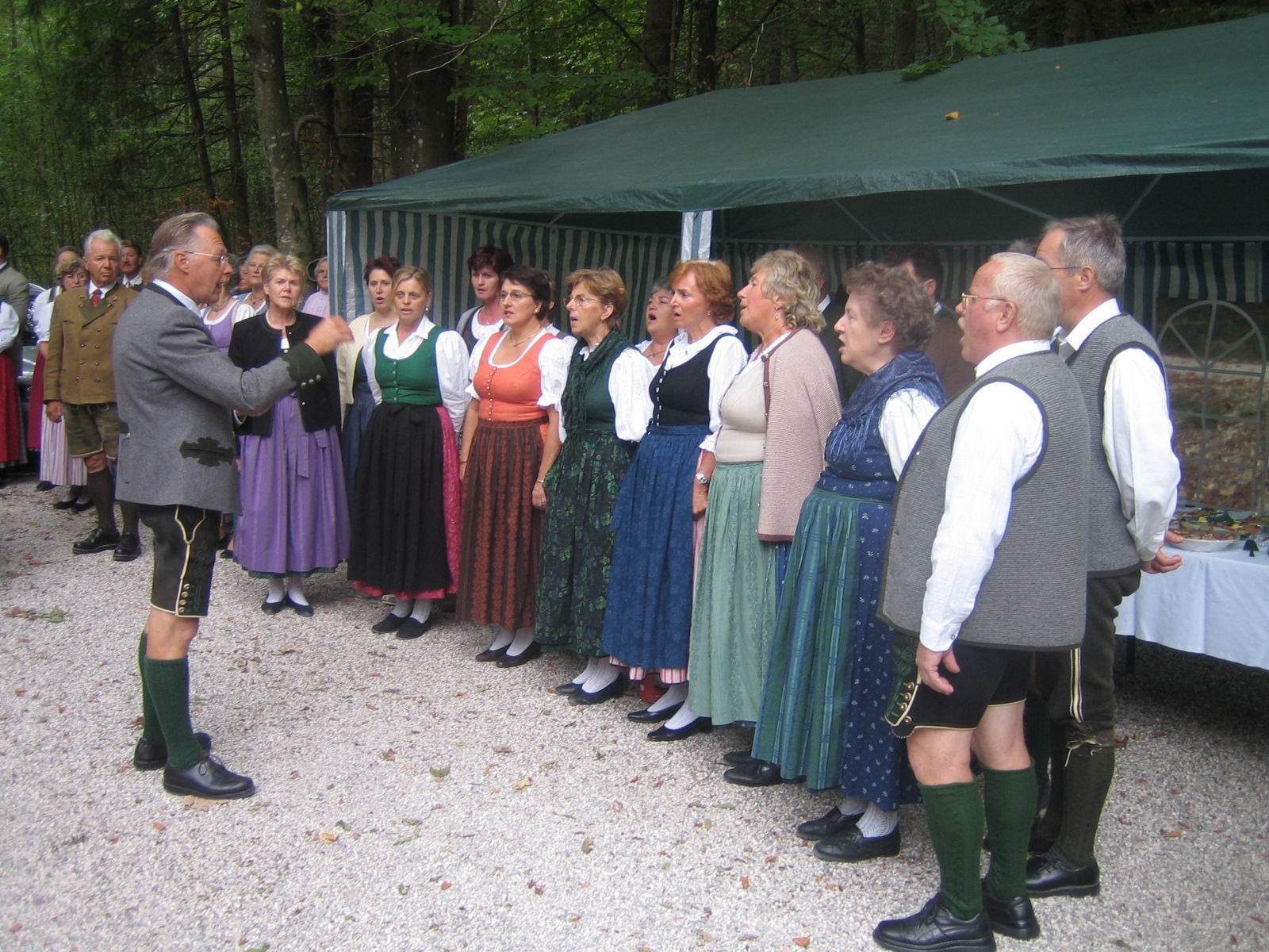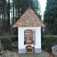 Whether the “Trinity Chapel” owes its origin to the Holy Trinity pilgrimage to Lauffen, which was particularly popular in the turbulent 17th century, cannot be determined at present. The Holy Trinity was invoked against disasters of all kinds, but especially against the plague and similar epidemics. The first traces of the chapel are from the Biedermeier period, when the chapel was extensively renovated between 1844 and 1872 and decorated with murals. In 2006, the chapel was rebuilt in its original form, with the reused roof rotated by 90 degrees. The ceremonial consecration took place on 15 September 2006 and was financed by local traditional society “Goldhauben-, Kopftuch- und Schwammerlhutgruppe” society (traditional female head dresses).