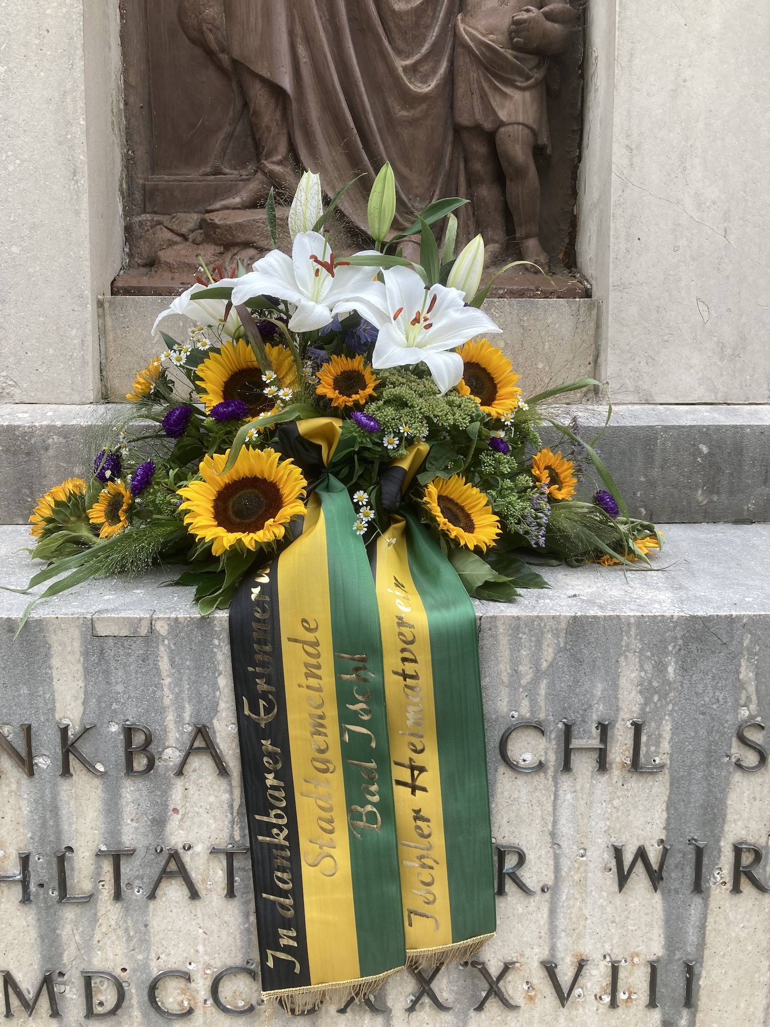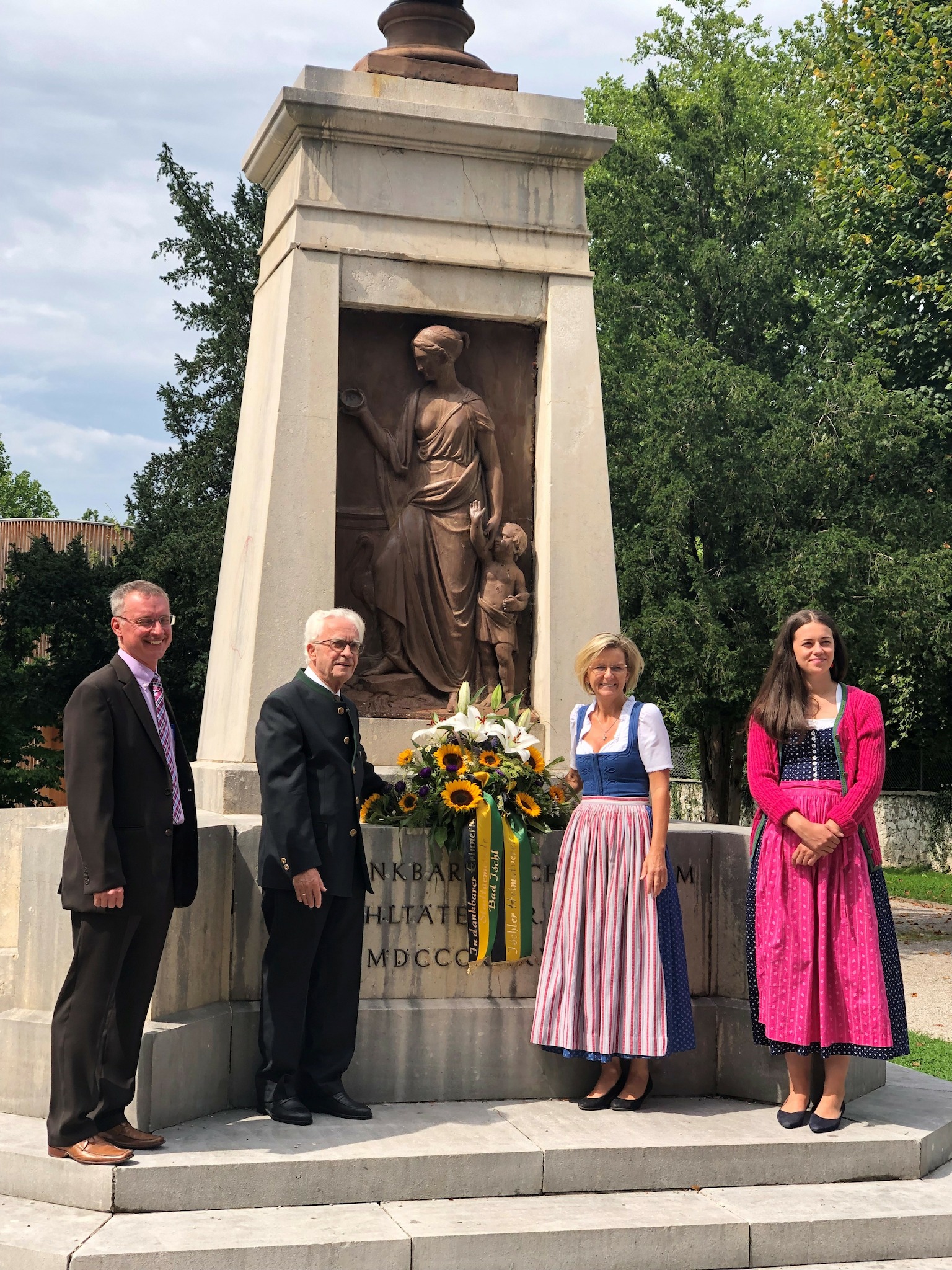 The epic monument in the middle of a garden donated by Wirer himself reflects his significance. As the inscription reports, the monument was errected in 1838 by the Municipality of Ischl to its benefactor and unveiled in 1839. However, Wirer paid for it himself. It was created by the master stonemasons Doppler of Salzburg, and the sculptures were by Josef Kähsmann (see also Rudolf Monument in Rudolfspark garden). Unfortunately, the enclosure with chains and stone bollards was removed during WW2. The monument was last restored in 1983.