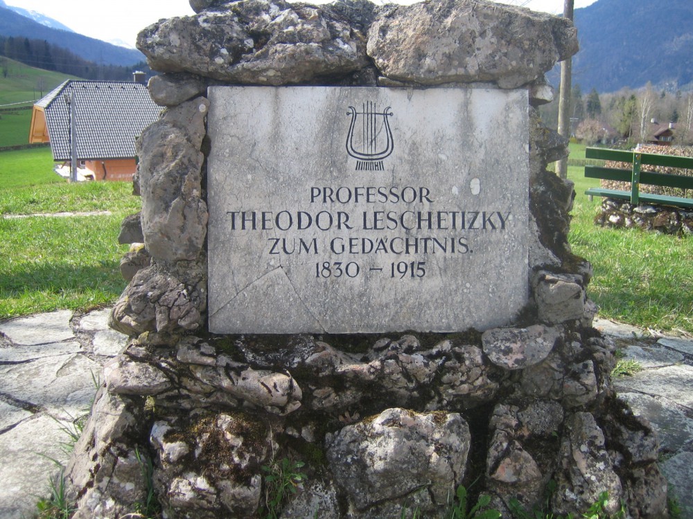 Der Klaviervirtuose, Musikpädagoge und Komponist Theodor Leschetizky war ein langjähriger Ischler Kurgast, er hatte in der nach ihm benannten Leschetizkygasse eine eigene, heute noch kaum veränderte Villa (Nr. 8). 1902 wurde hier von seinen Schülern eine „Leschetizkyhütte“ errichtet, diese ist um 1930 durch den Gedenkstein ersetzt worden. Angeblich war hier auch ein Lieblingsplatz von Johannes Brahms (der mit Leschetizky befreundet war), In Bad Ischl leben immer noch direkte Nachkommen Leschetizkys.
