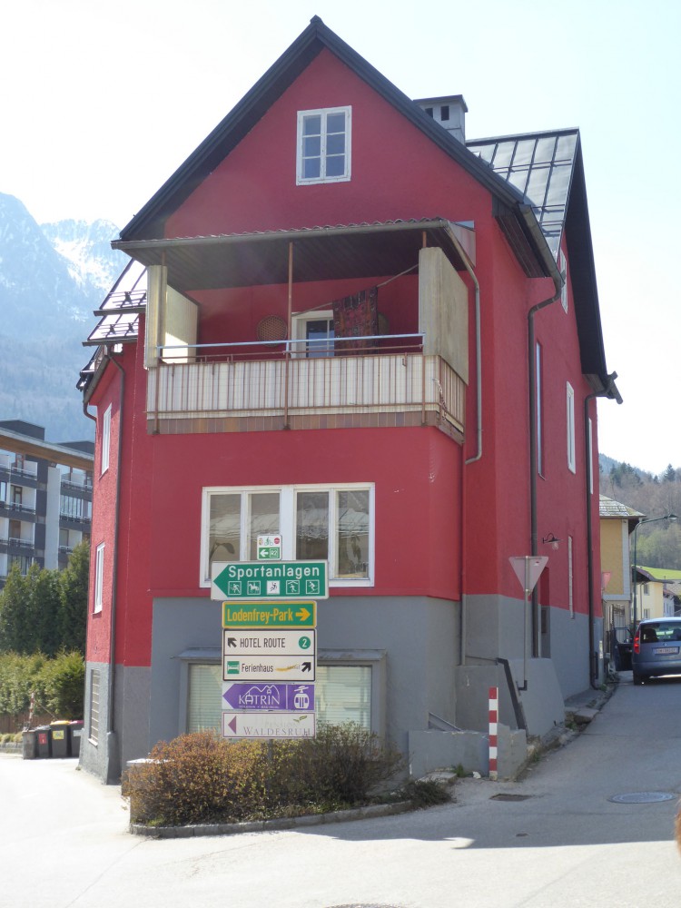Diese eher unscheinbare Villa, besser vielleicht gesagt Eckhaus, ist heute wieder, nach langem fast verwahrlostem Zustand, nett renoviert und zeichnet sich durch seine rote Hausfassade aus!