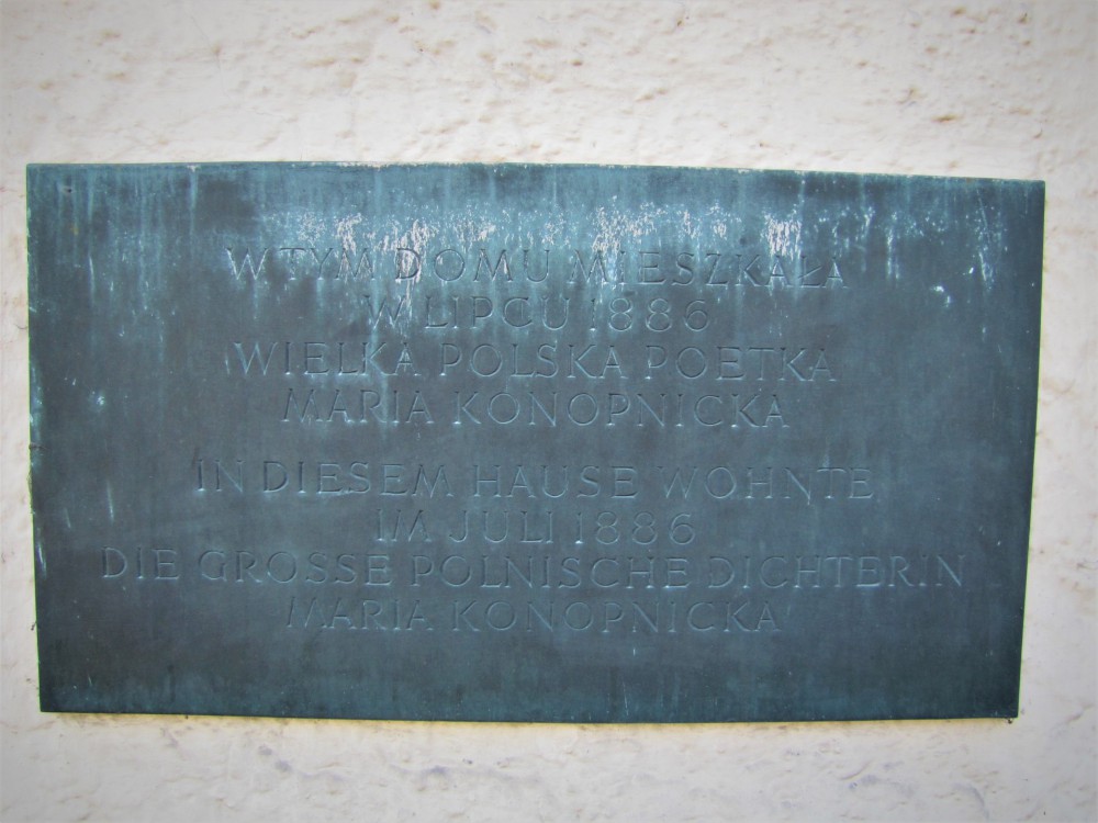 Geb.1842 in Suwałki [damals Rußland, jetzt Polen] – gestorben 1910 Lemberg [damals Österreich, jetzt Ukraine]). 1872 wurde Maria mit einem wesentlich älteren Gutsbesitzer verheiratet und hatte 6 Kinder. Nach 14 Ehejahren ging sie nach Warschau und widmete ihr weiteres Leben der Literatur und Publizistik. Ihr Wirken im geteilten Polen fand hohe Anerkennung.Sie besuchte zahlreiche europäische Länder. Im Juli 1896 wohnte die Dichterin im Haus Ahornstraße 11. - Sie wird als bedeutende polnische Lyrikerin angesehen.