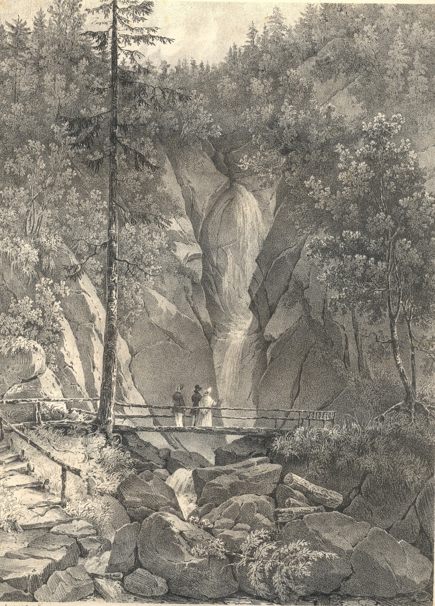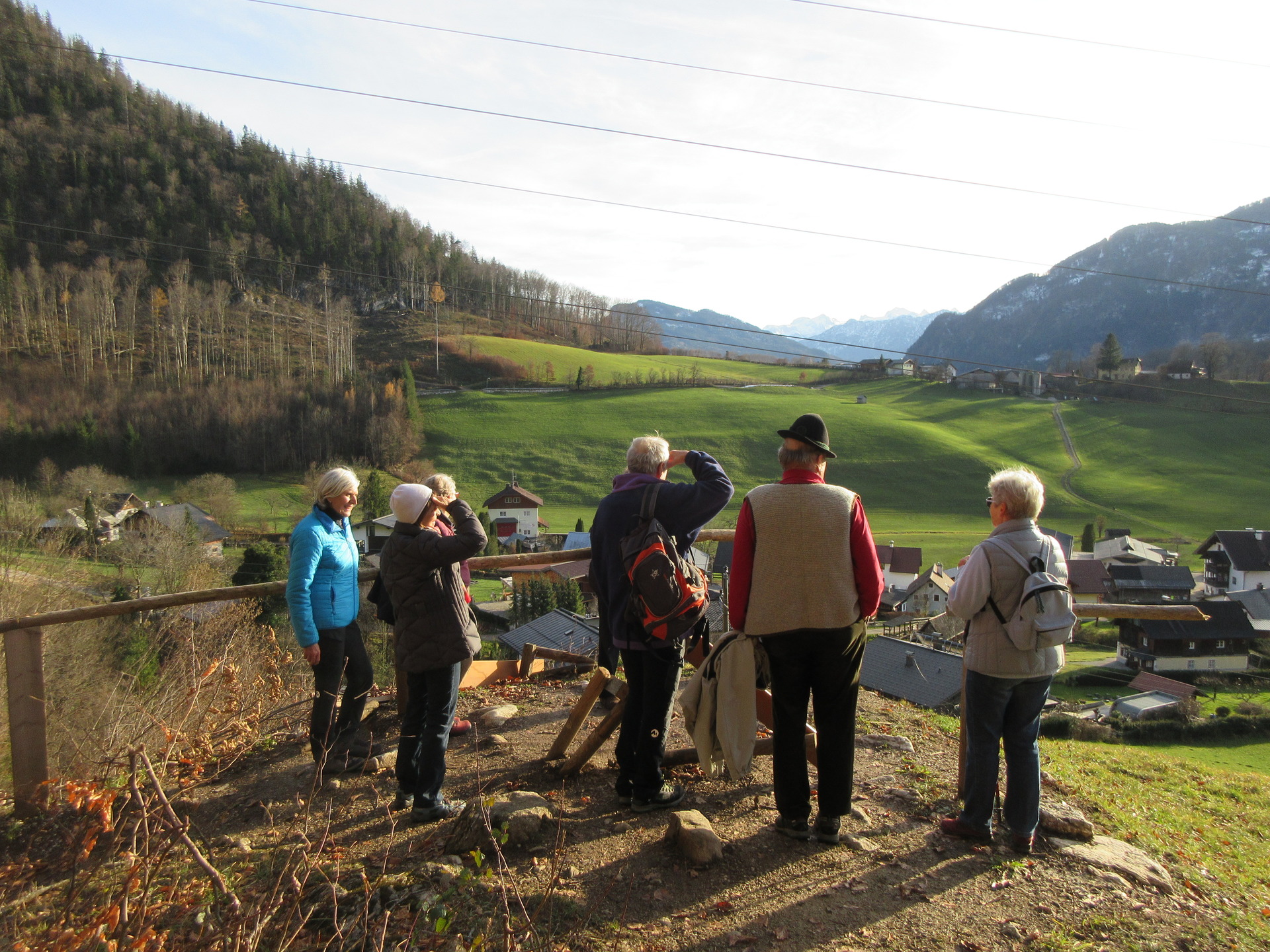 Nur einige Schritte vom Wasserfall entfernt am Waldrand befindet sich ein weiterer Ruhe- und Aussichtsplatz der Biedermeierzeit, nämlich die „Dachstein-Ansicht“ (später auch: -"Aussicht“), gestiftet um 1830 vom Offizier und Gelegenheitsdichter Josef Stierle-Holzmeister, der auch gleich ein passendes Gedicht dazu geliefert hat. Der einstmals hier befindliche Pavillon ist längst verschwunden, das Stierle-Holzmeister´sche Gedicht wurde durch eines von Viktor Scheffel ersetzt, geblieben sind zwei Bänke und natürlich der namengebende Blick zum Dachstein.