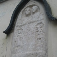 Grabstein für Romanus, Sohn des Maternus, und seine Gattin Romana Argentonia. Er stammt aus der Zeit um 200 n.Chr. und befand sich schon um 1530 am Kirchturm.
