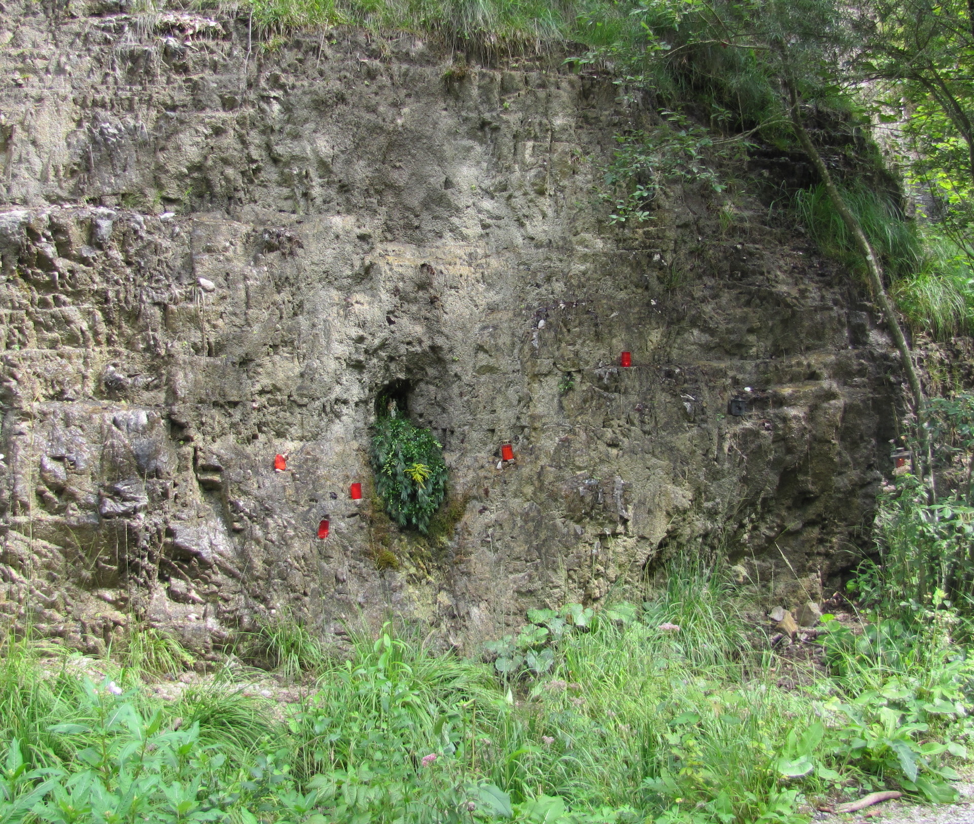 In der Zimnitzwildnis (verlängerter Eiskapellenweg) in der Felswand neben der Forststraße