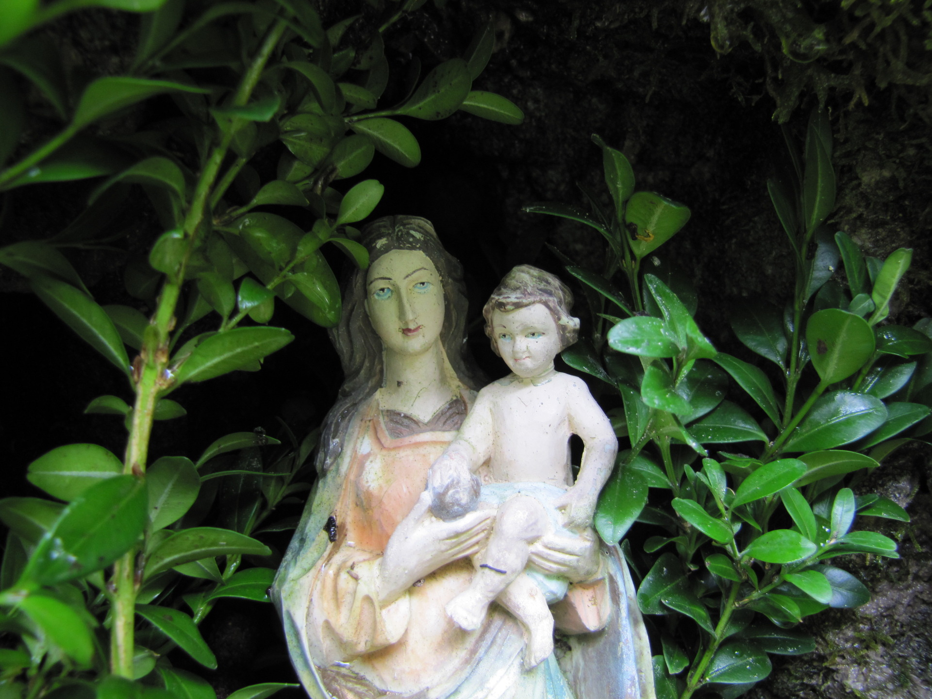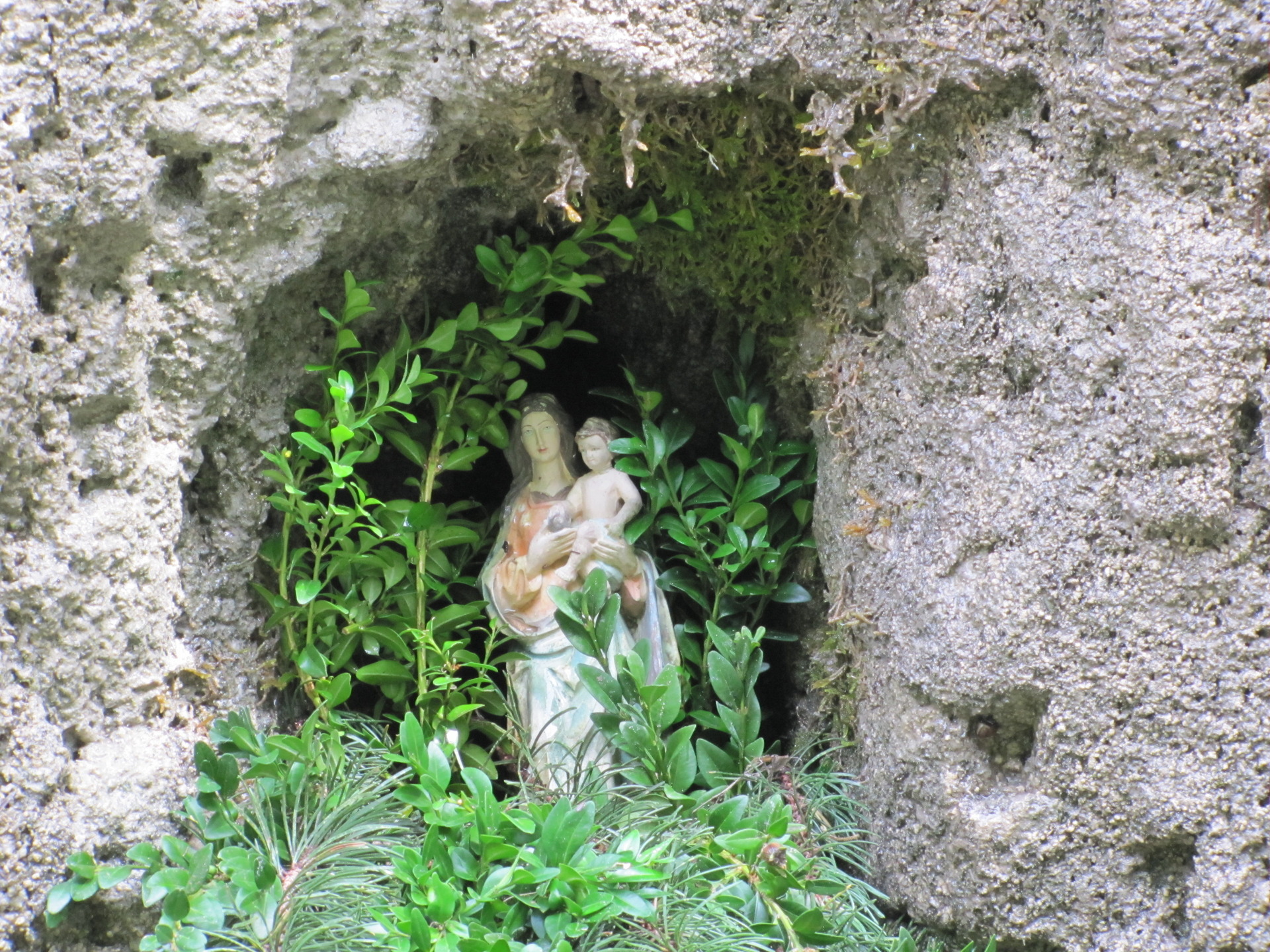 In einer kleinen natürlichen Felsnische steht eine der üblichen „Lourdes-Statuen“ aus Gips, besonders malerisch ist die Stätte im Winter, wo die kerzenbeleuchtete Statue ganz von Eis eingeschlossen ist.